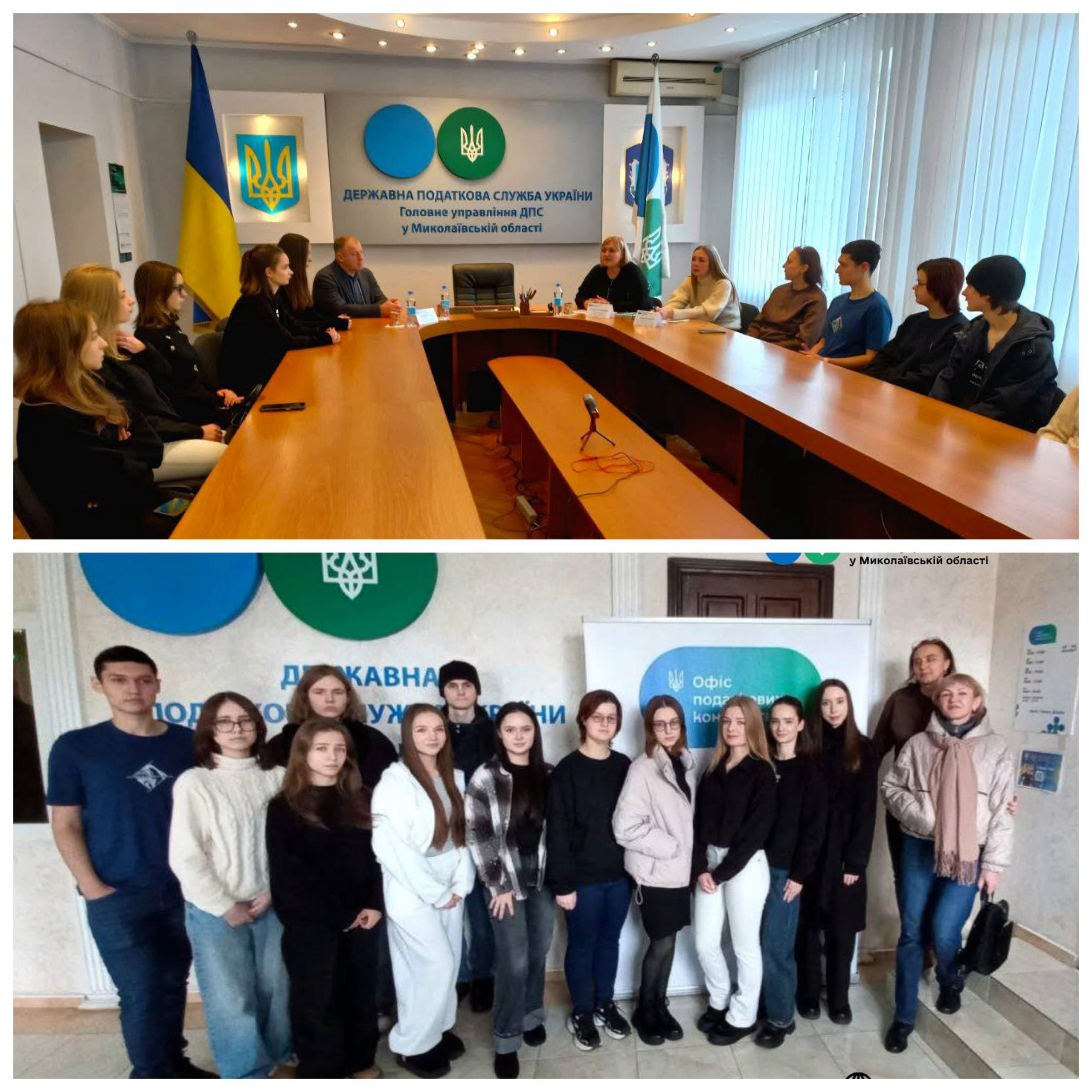 На початку тижня здобувачі освіти 3 курсу коледжу спеціальностей «Облік і оподаткування» та «Фінанси, банківська справа, страхування та фондовий ринок» відвідали екскурсію у Головному управлінні ДПС у Миколаївській області.