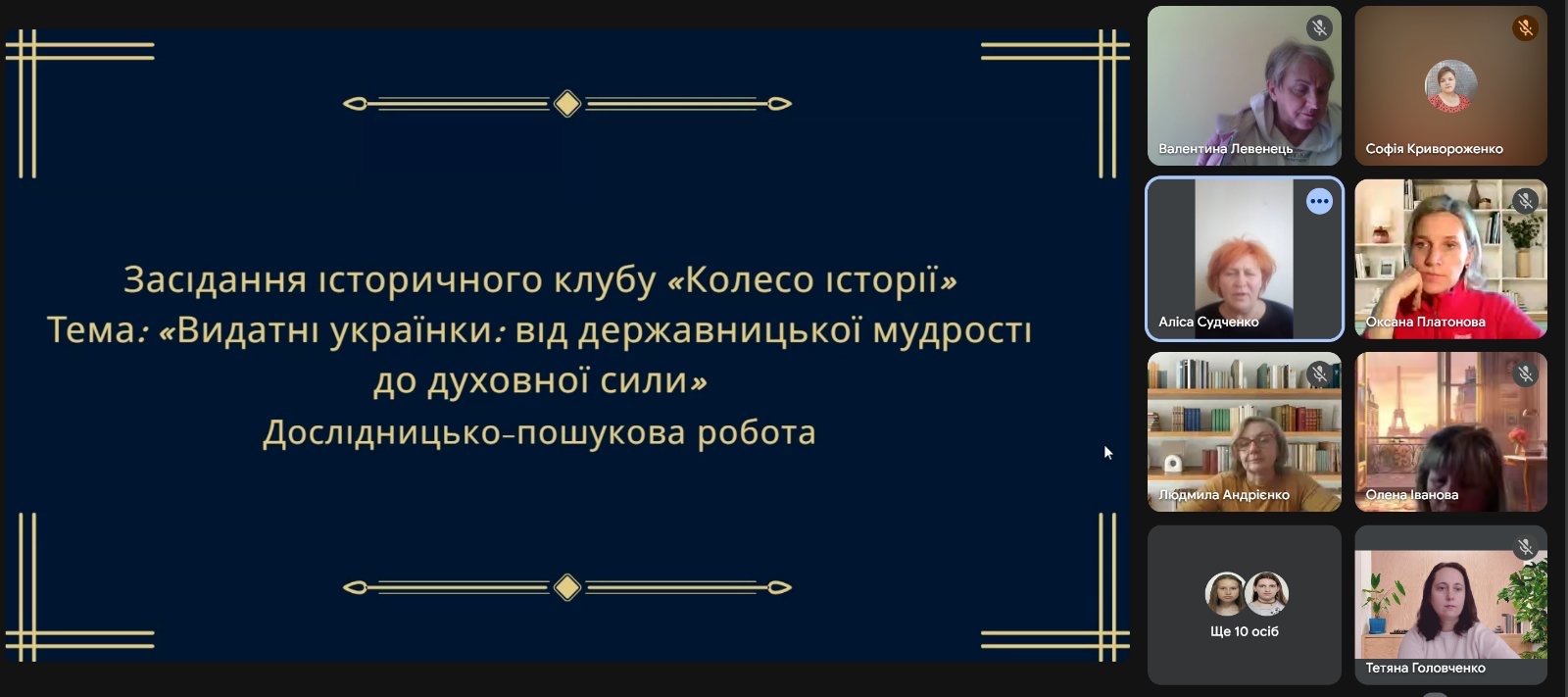 В межах проведення Тижня наук циклової комісії викладачів гуманітарних, філологічних дисциплін, фізичного виховання та захисту України викладачкою Судченко А.В. було проведено відкрите засідання історичного клубу «Колесо історії». Тема зустрічі — «Видатні українки: від державницької мудрості до духовної сили».