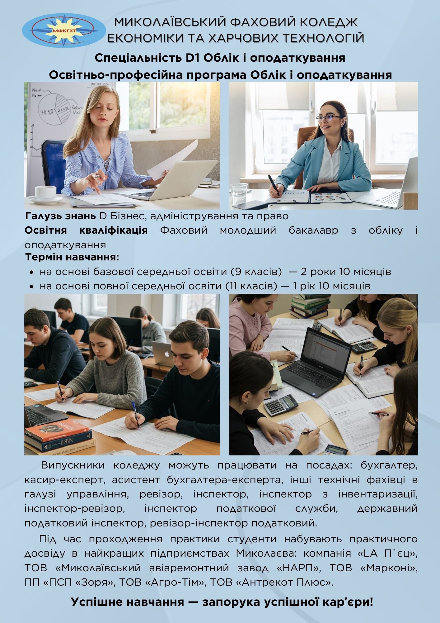 | Кваліфікація в дипломі | Освітньо-професійний ступінь – фаховий молодший бакалавр Спеціальність – Облік і оподаткування Освітньо-професійна програма – Облік і оподаткування |